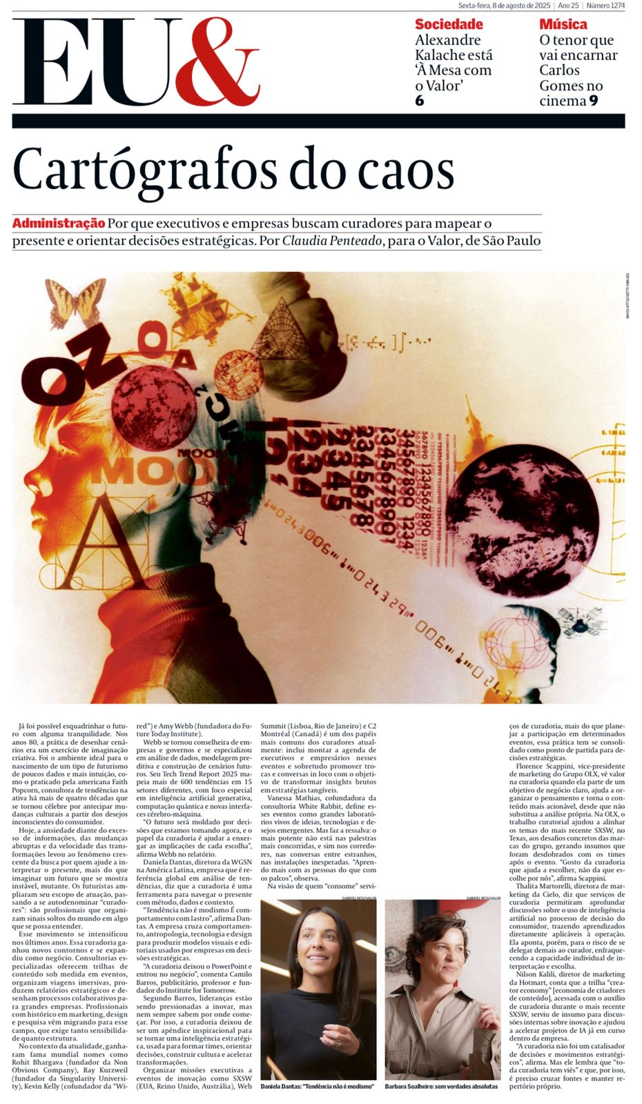 O caderno EU& do Valor Econômico publicou uma matéria da fantástica jornalista Claudia Penteado sobre o papel dos curadores como “cartógrafos do caos”. É uma honra para nós do Institute for Tomorrow fazer parte dessa discussão em um dos principais veículos de economia e negócios do país — mostrando como a curadoria se tornou essencial na busca de repertório e na construção de relevância para marcas e líderes.