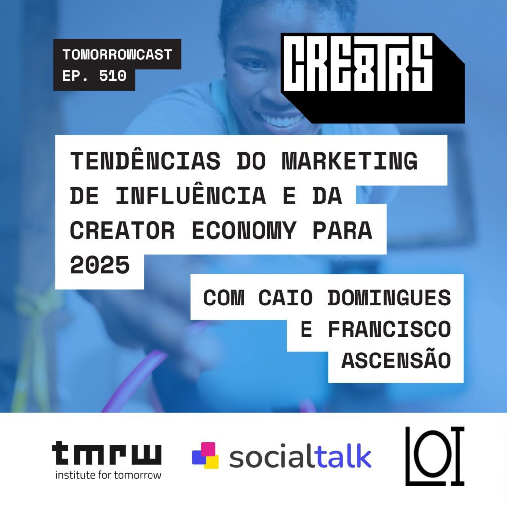 No último episódio de 2024 do Tomorrow Cast, Camilo Barros e João Baptista, sócios do Institute for Tomorrow, conversaram com Caio Domingues, da LOI Digital, e Francisco Ascensão, da Social Talk. O tema central foi a evolução e o futuro da Creator Economy, com insights baseados em experiências práticas e no estudo “Influencer Marketing Trends 2025”. Esse estudo destaca tendências emergentes e é uma referência para quem deseja compreender os rumos do marketing de influência (acesse o estudo aqui).